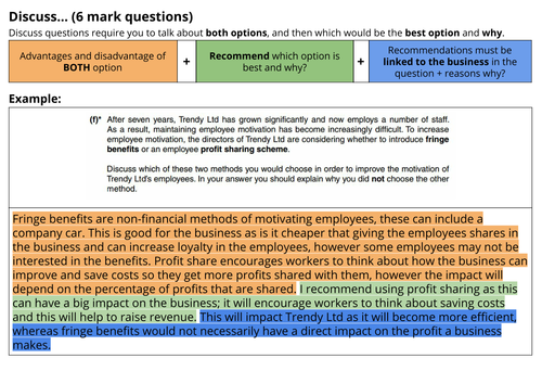 Aqa Gcse Business 9 1 Exam Structure 6 Mark Questions Teaching Resources