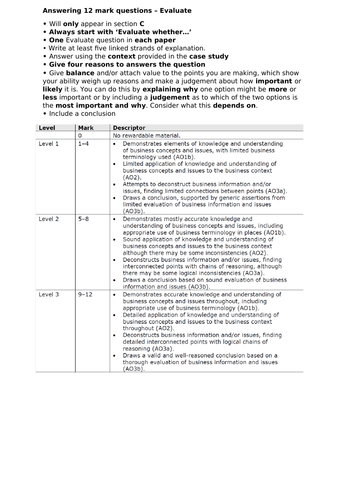Edexcel Gcse 9 1 Business Exam Technique 12 Mark Evaluate Questions Teaching Resources