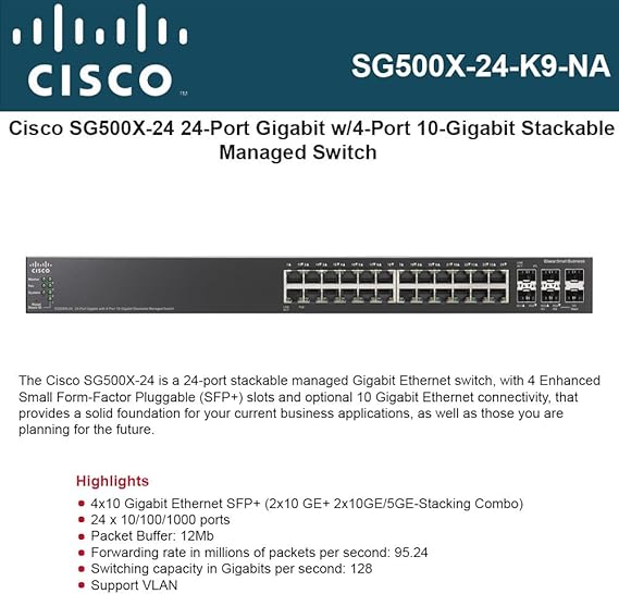 Amazon Com Cisco Small Business 1 Sg500x 24 K9 Na Sg500x 24 24port Managed Gb 4port 10gb Stackable Switch Electronics